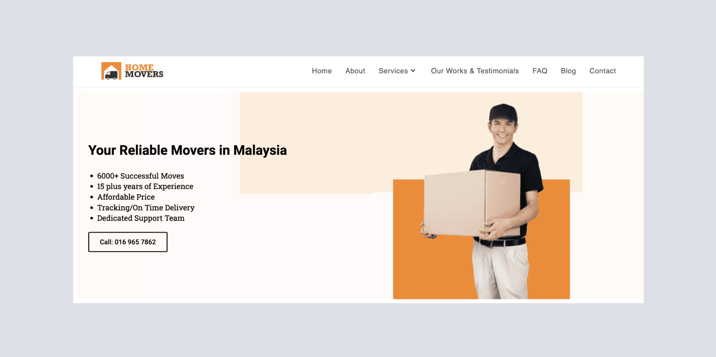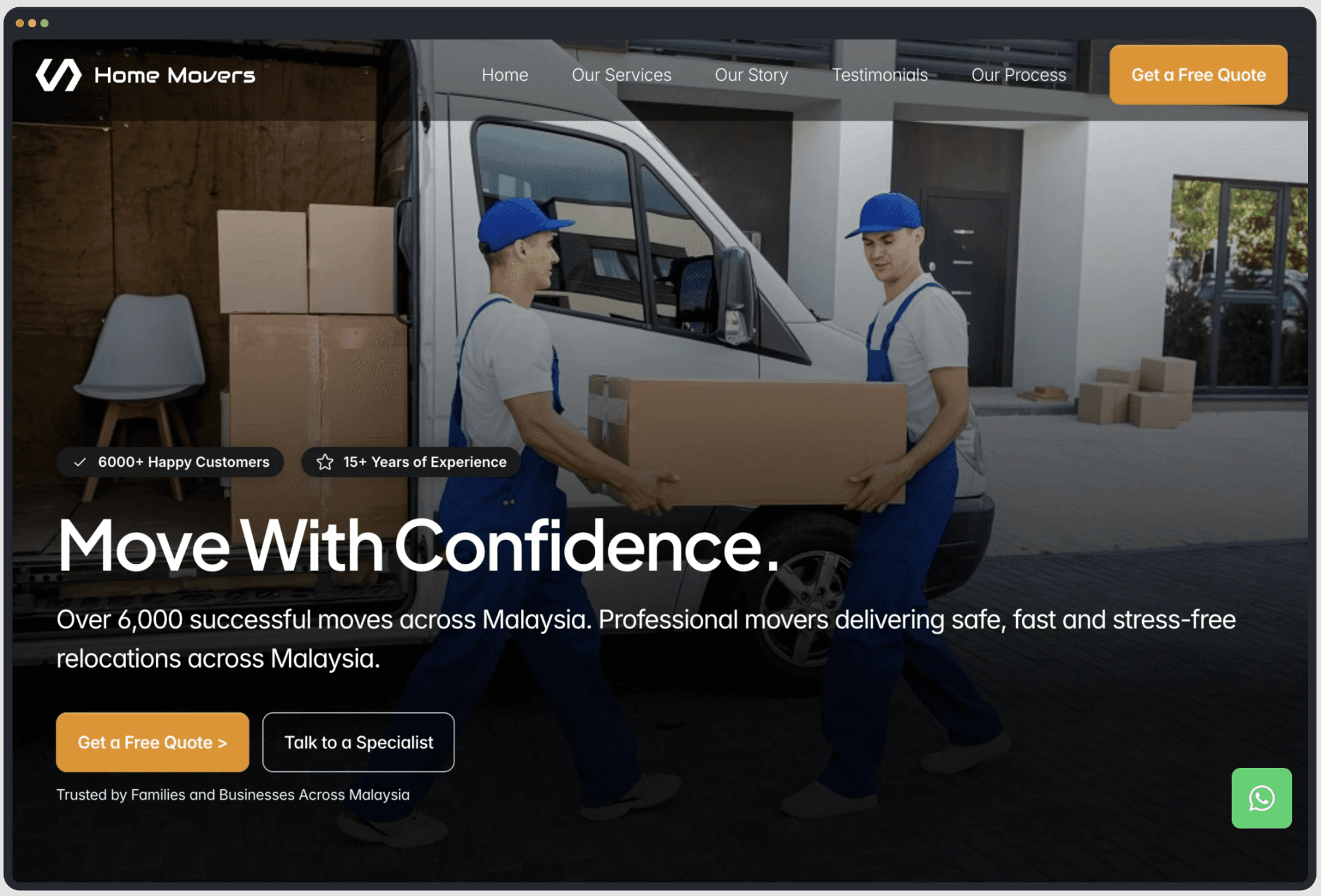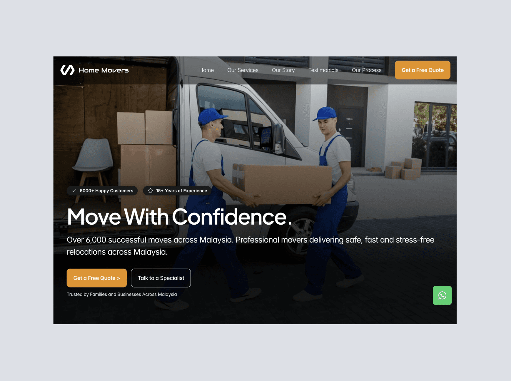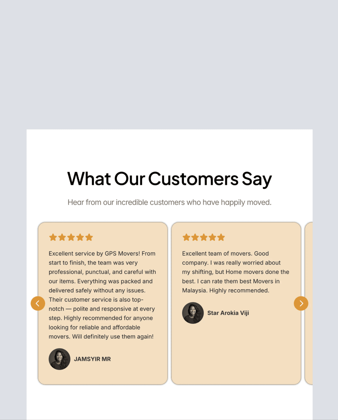 The testimonials section is targeted for users who want social validation before moving on. This section shows all the happy customers who have worked with Home Movers to show proof and credibility of their capability in delivering excellent services.