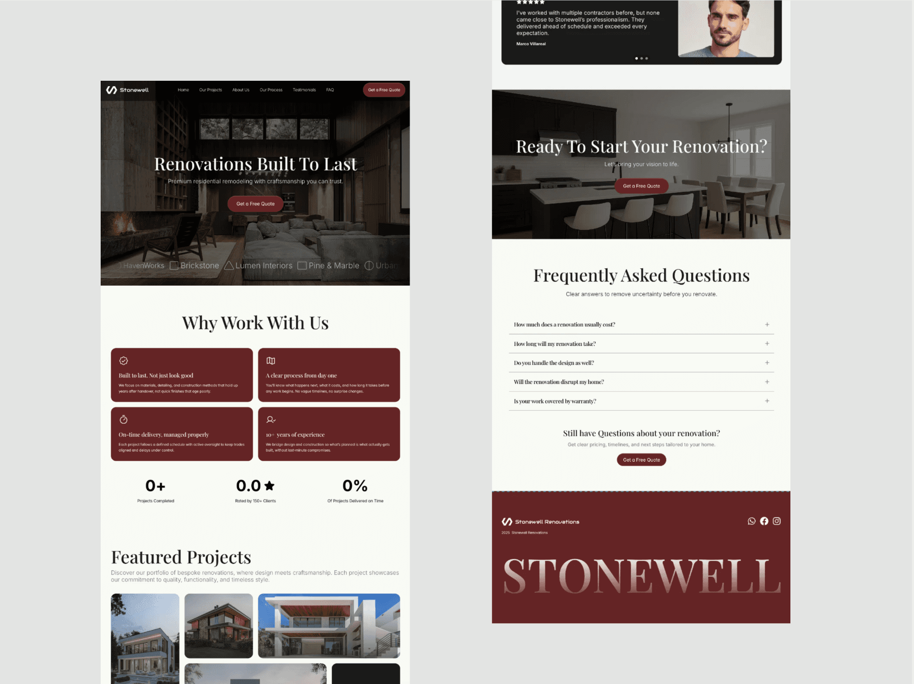 The “Why work with us” section builds trust through experience, positioning, and proof, answering why this contractor is the right choice.
